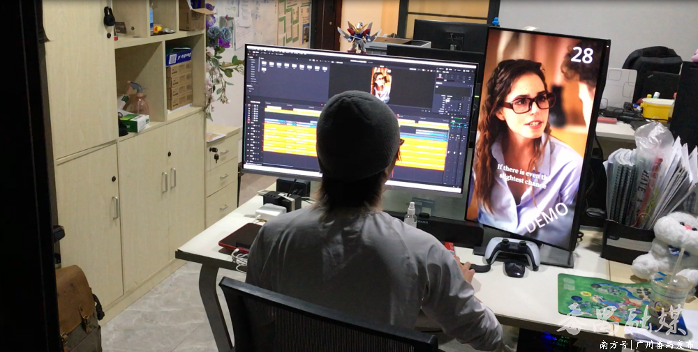 走进众树数字位于番禺区的拍摄基地,当代王人市、因循街区、温馨居家等场景参差有致,可自满多元题材的拍摄需求;而在后期编著室内,责任主说念主员专注处治素材,多语种字幕校对、镜头精修有序鼓吹,一片抖擞创作征象。这份生机的背后,既有企业在深研受众、精磨本体、立异期间等方面的中枢竞争力,亦有番禺区政策、产业、东说念主文三重赋能的深厚积淀。
